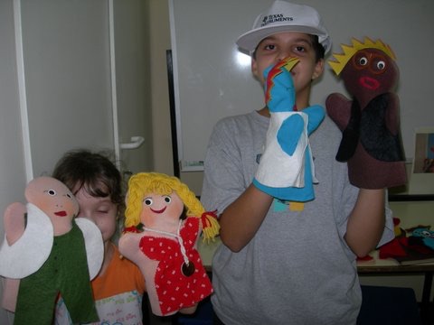 Family Event May 3, 2015 480 × 360 The puppets were made from ready made pieces and were not taken home but reused at other family events. Giving Puppet show with just made hand puppets