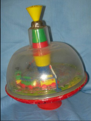 spinning top March 11, 2015 360 × 479 Metal and plastic spinning top In good working order still. 1960s?